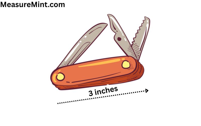A small pocket knife, when closed, is often about 3 inches long. These are designed to be compact and easy to carry, making them a good real-world example.