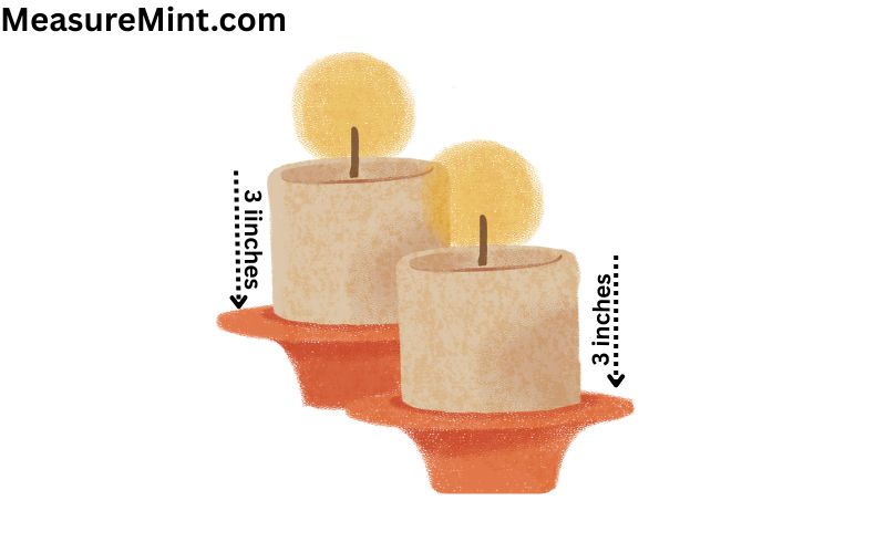 A single tealight candle is about 1.5 inches wide. If you place two next to each other, the total width becomes about 3 inches. This is useful for understanding width rather than length.
