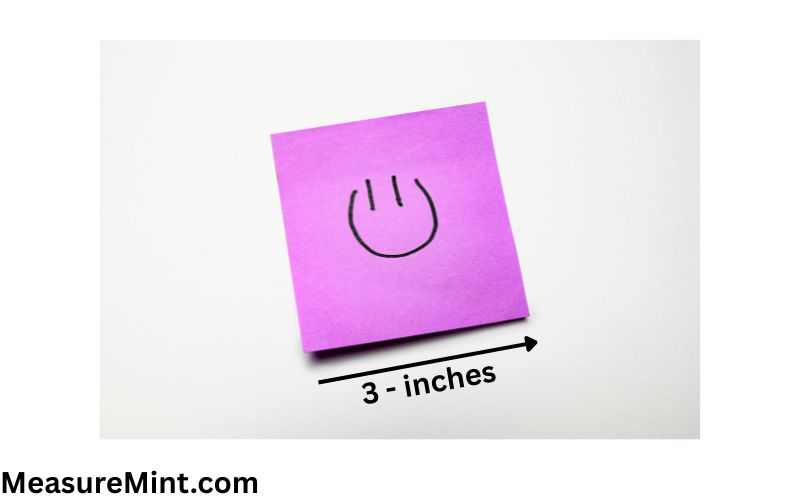 A small square sticky note is one of the best examples. These notes are exactly 3 inches in height and width. If you have ever used one, you already know what 3 inches looks like. It is a perfect square that fits easily in your hand and is commonly used for reminders.