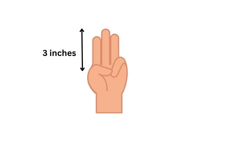 Place your index, middle, and ring fingers side by side. The total width is very close to 3 inches. This is one of the easiest and most reliable ways to measure without tools. You always have your hands with you, so this method works anywhere.